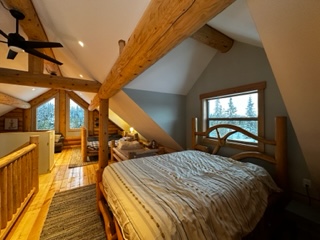 beds in the loft. The main source of heat comes from the wood burning stove (wood