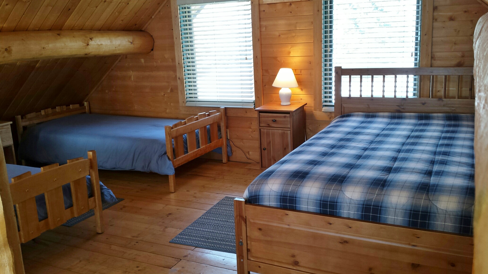 hall. Upstairs there is an open loft with a queen and a double bed.